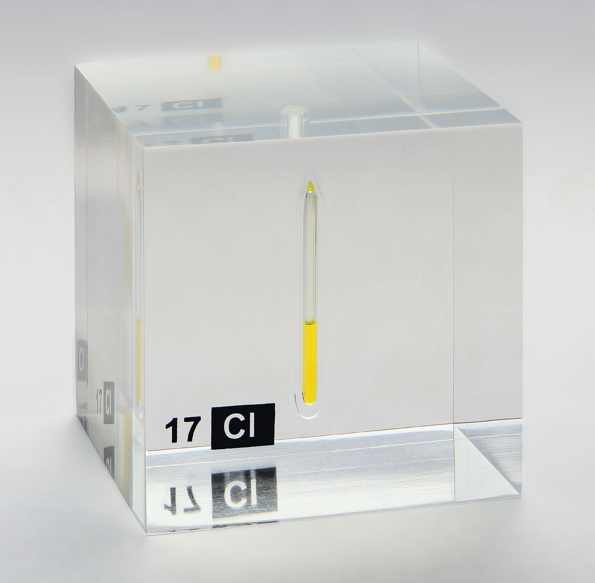 氯,是一种化学元素,其化学符号为Cl,原子序数为17,原子量为35.453 u,属于卤族(即周期系ⅦA族)。氯是第二轻的卤素,处于氟和溴之间,因此氯的非金属性介于它们之间。氯在室温下是一种有强烈刺激性气味的黄绿色气体,剧毒。它是反应性极强的元素和强氧化剂。在所有元素中,氯拥有最高的电子亲和力并且是鲍林电负度中第三高阴电性的元素,仅次于氧和氟。
